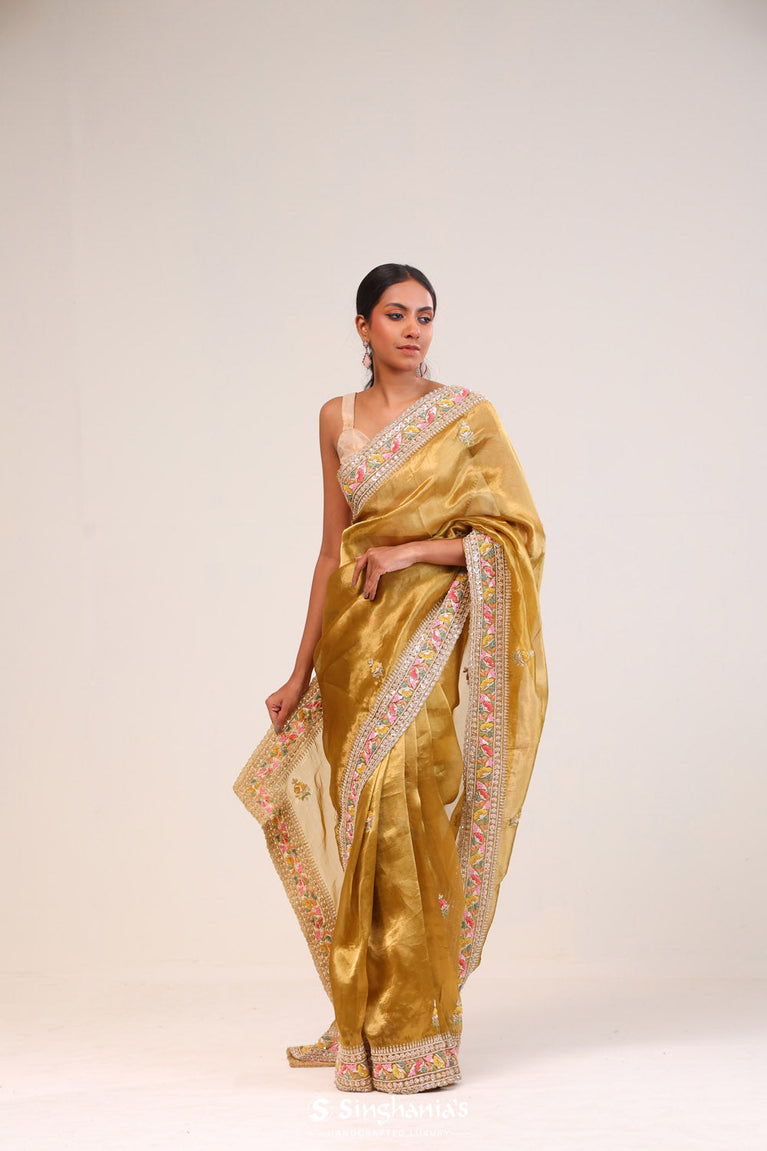 Cream Gold Tissue Handcrafted Saree