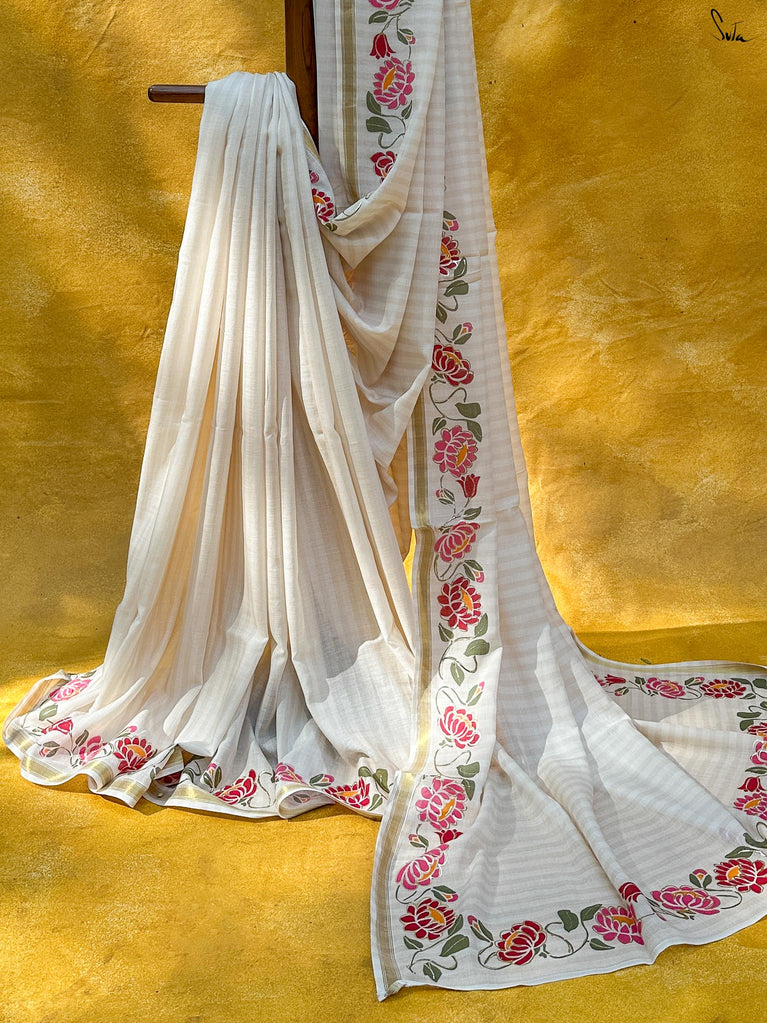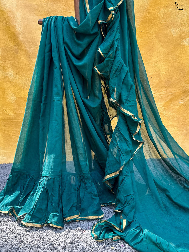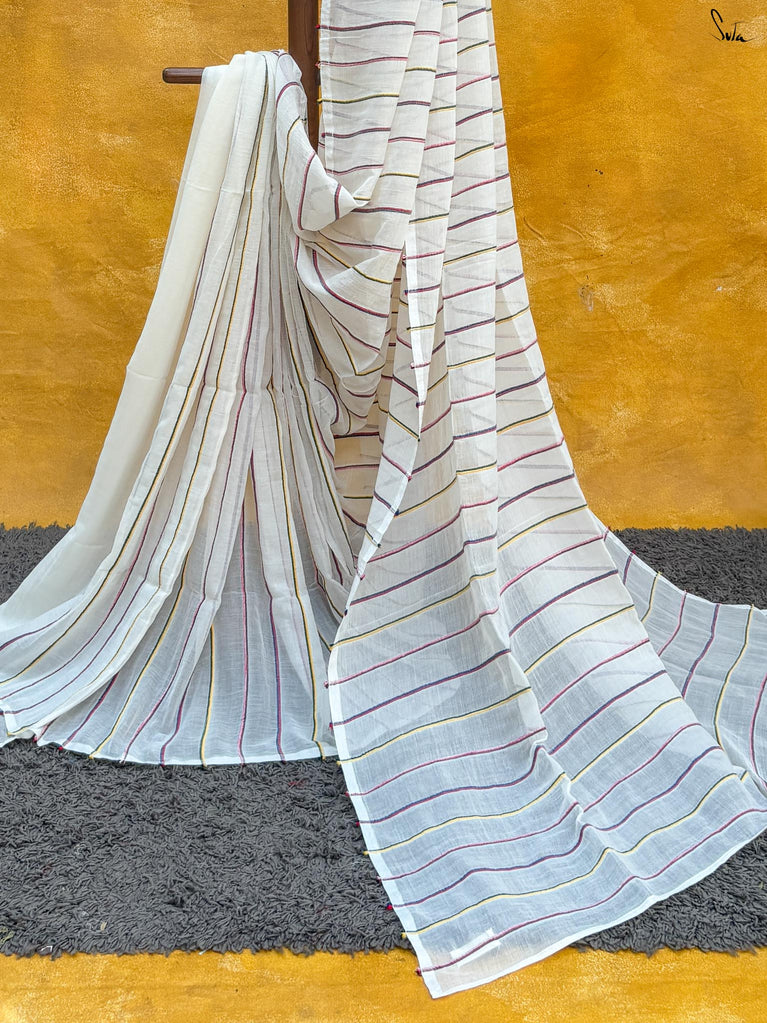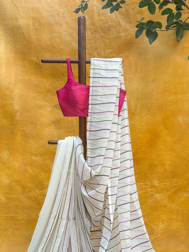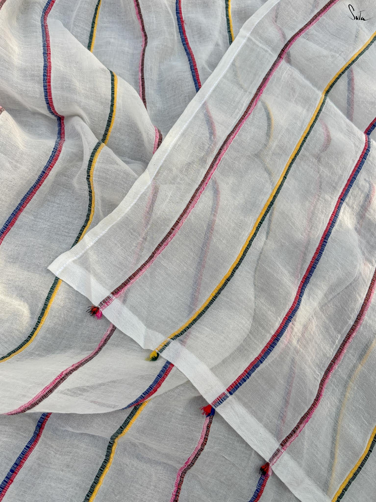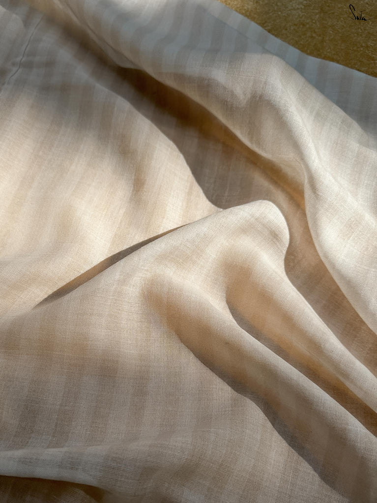 The mul cotton is what we call ˜made in heaven at Suta. Known in West Bengal as mul mul, the fabric is buttery soft and delicately beautiful. The weave of this fabric is very fine, and this lends a very fluid texture to it that makes draping it a breeze. It is truly like a hug that wraps you in its love!