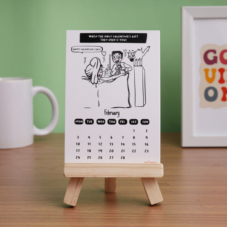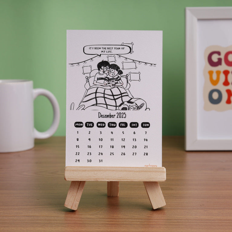 This calendar is for people who look at a cat and instantly feel happier.Each month comes with a cute cat moment that’ll make you smile without even trying.If you’re a cat parent, this calendar will feel like your best desk buddy (if only your cat allows it!)And if you’re gifting it, it’s perfect for anyone who talks about their cat more than anything else.Specifications-Size of the Easel : 4.5 x 3.5 inches