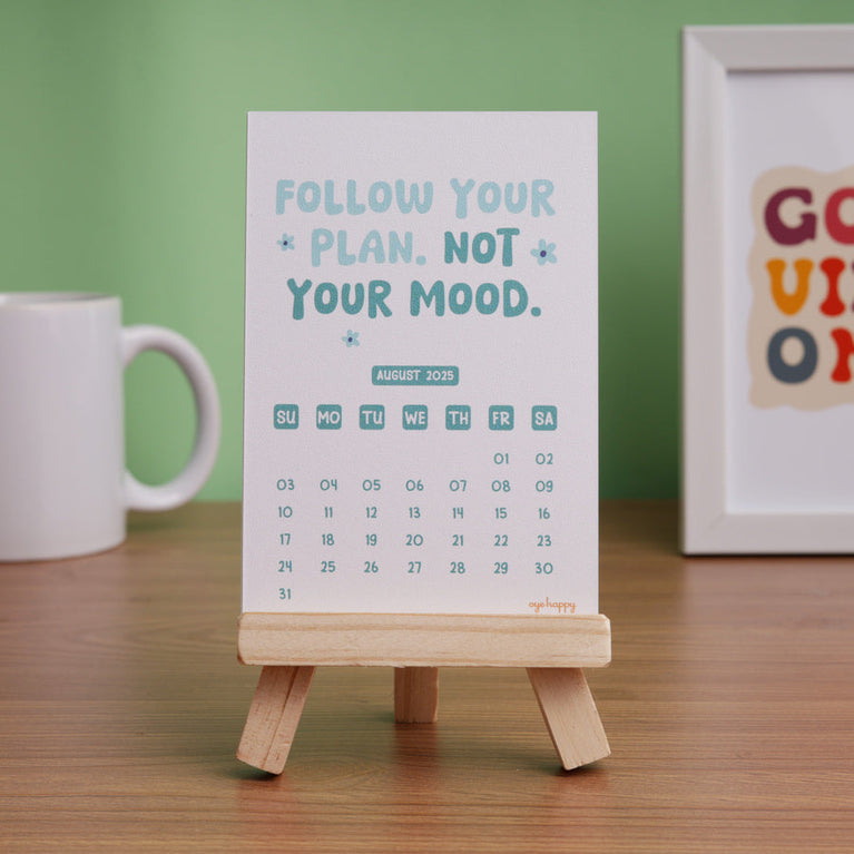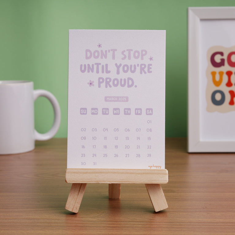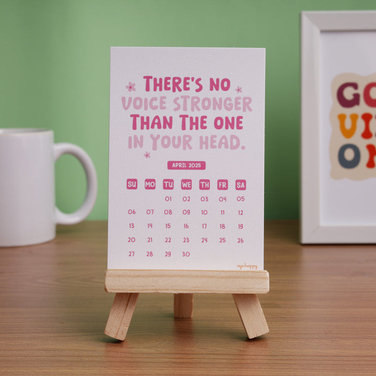 Here’s a calendar that brings a whole year of good vibes, right on your desk!This calendar serves as your daily reminder that positive thoughts lead to a positive life.If you believe in the power of positivity, this calendar will be your daily dose of good vibes. And if you know someone who could use a little extra encouragement, this is the perfect gift to brighten their days.Specifications-Easel Size : 6 x 4 inches, crafted in pine wood.Calendar print : 8.5 x 12.5 cms