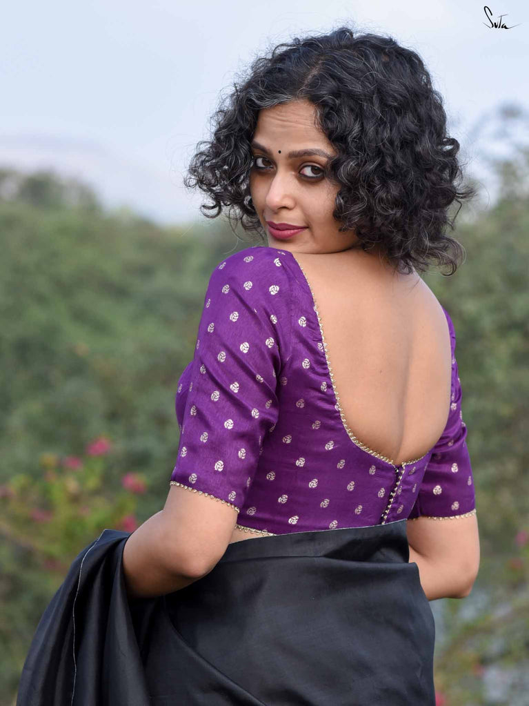 Blouse : Su, The model is wearing size XS blouse and the saree is Escaping Enigma