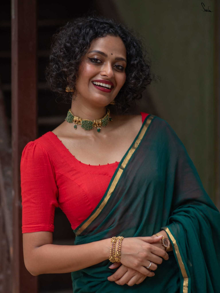Blouse : Su, The model is wearing size XS blouse and the saree is Spellbound Breeze