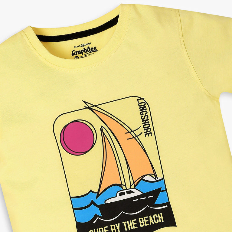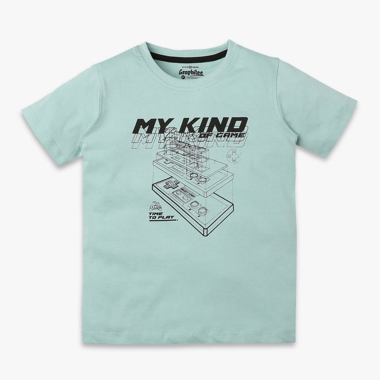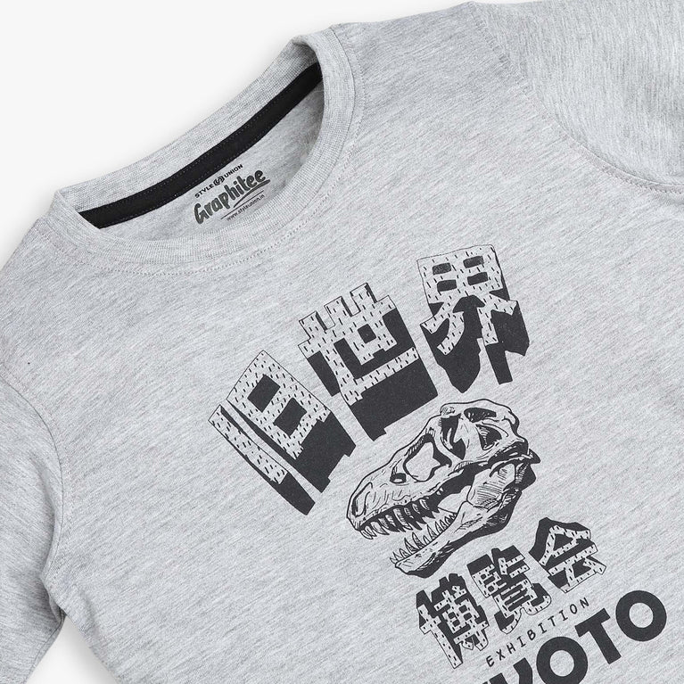 These graphic pattern t-shirt has crew neck and half sleeve. Made from cotton, your kid's feel comfortable wearing the product.