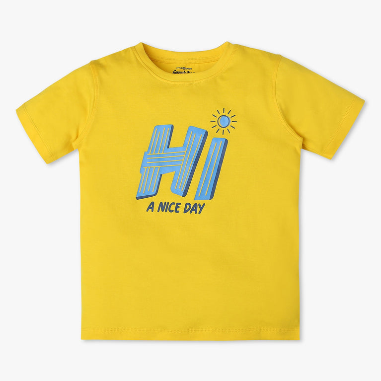 These world wide music theme, printed pattern t-shirt has crew neck and half sleeve. Made from cotton, your kid's feel comfortable wearing the product.