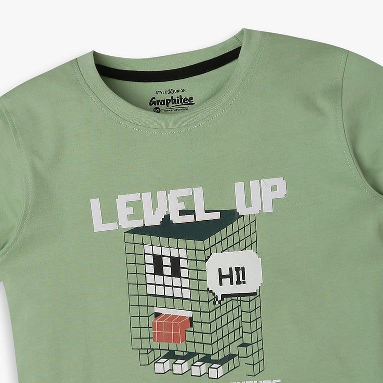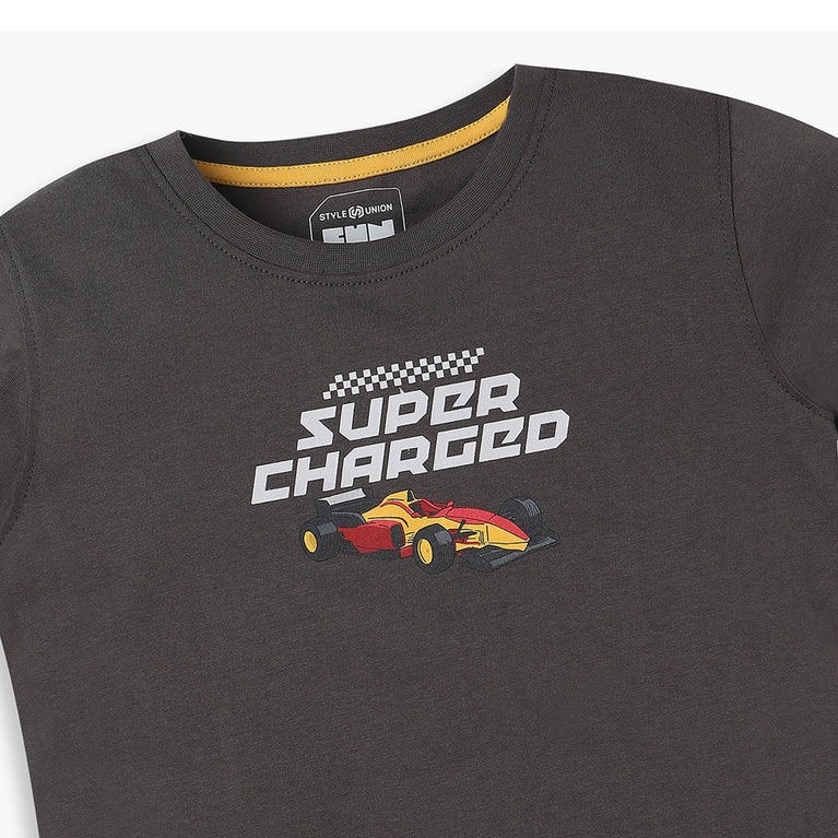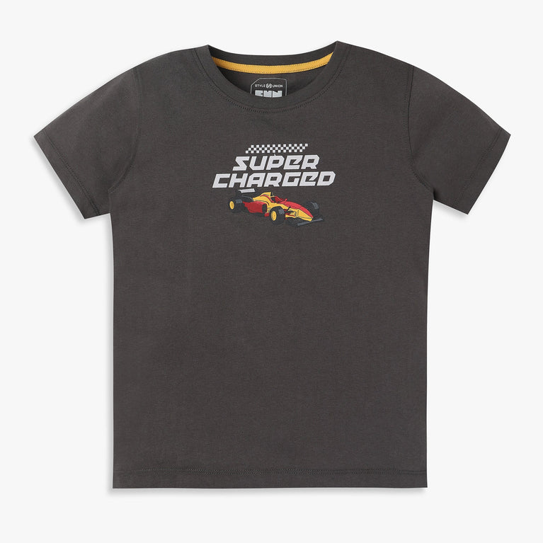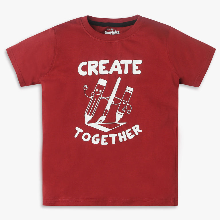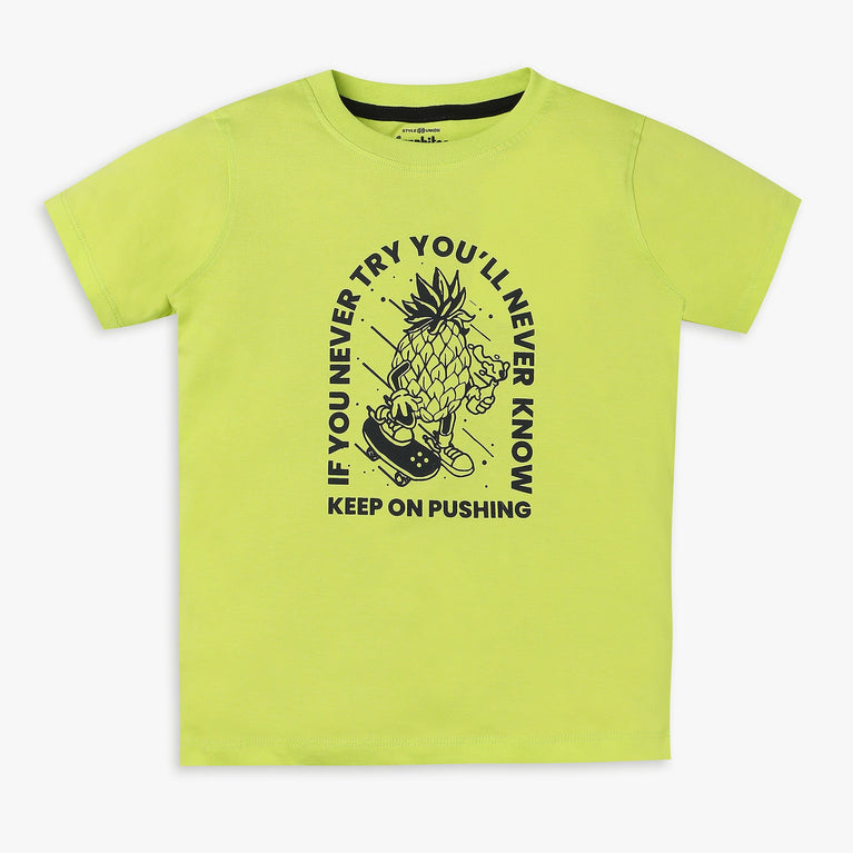 These printed pattern t-shirt has crew neck and half sleeve. Made from Cotton, your kid's feel comfortable wearing the product.