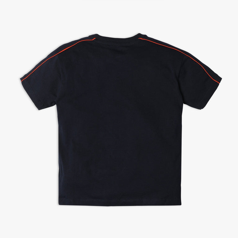 These world wide music theme, printed pattern t-shirt has crew neck and half sleeve. Made from cotton, your kid's feel comfortable wearing the product.