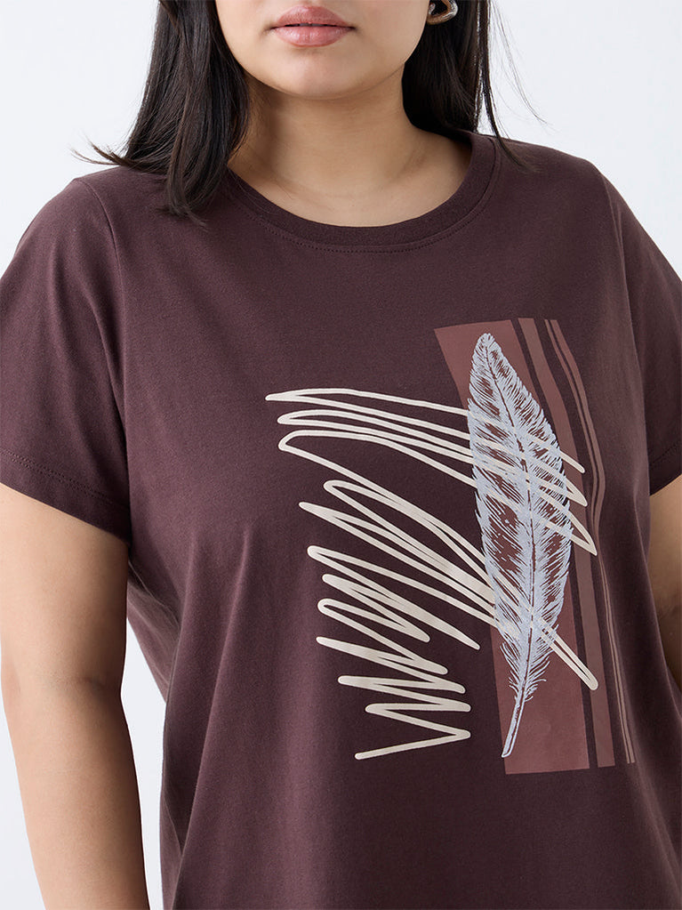 Gia Brown Printed Cotton T-Shirt