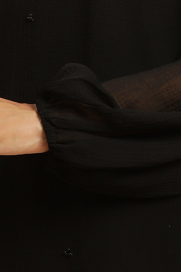 Get Ready Glam, Glitz And Gorgeous Look With This Black Western Wear Top. The Top Gives You Party As It Has Scalloped Hemline With Beaded Embellishment.