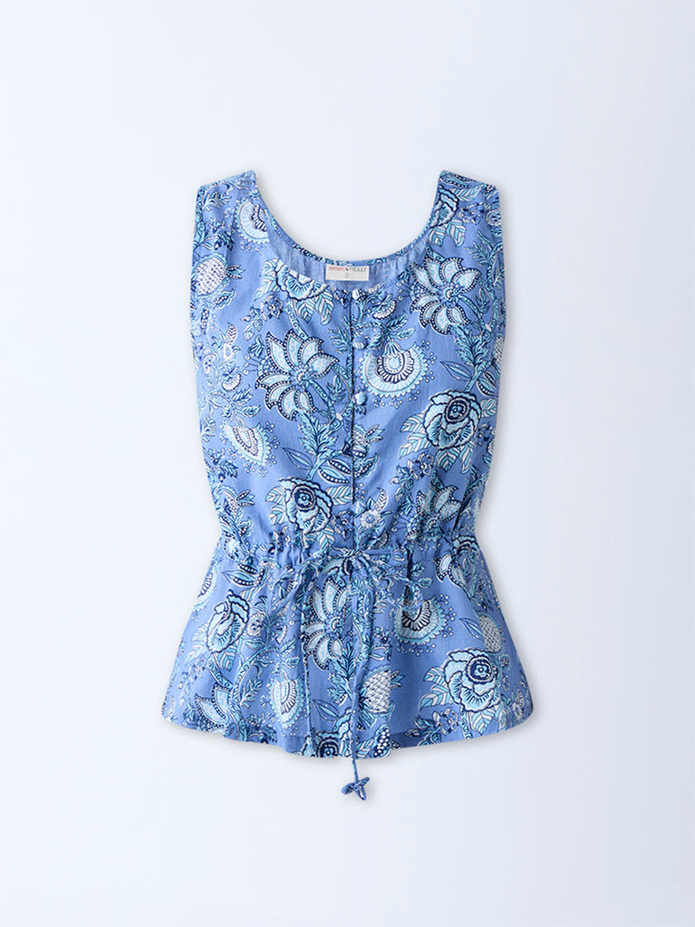 Bombay Paisley Blue Waistcoat- Style Cotton Top