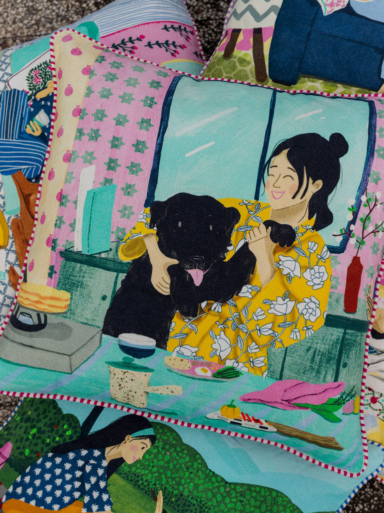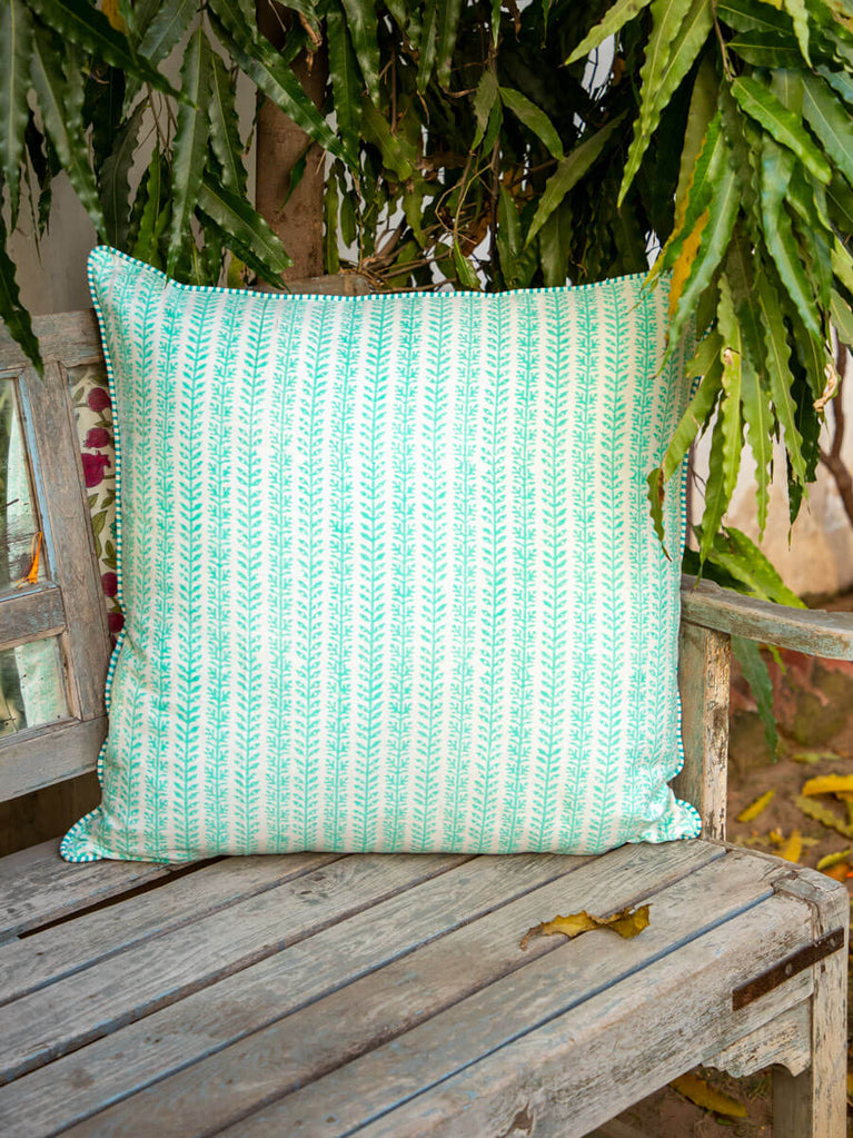 Heavenly Ride Block Printed Cotton Cushion Cover - 12 Inch