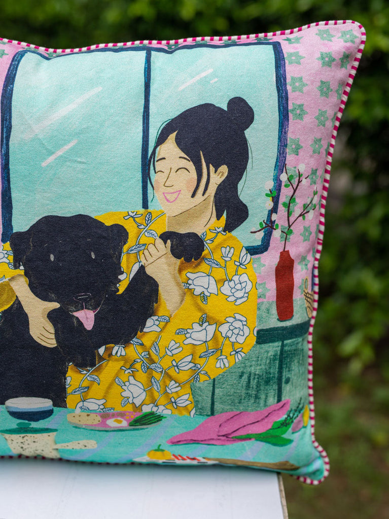 Fields of Sunflower Block Printed Cotton Cushion Cover - 16 Inch
