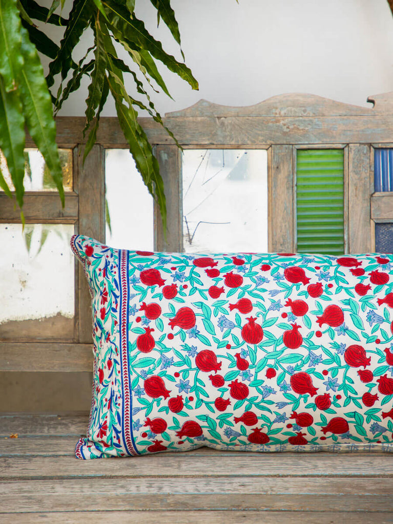 Fruits of Paradise Block Printed Cotton Cushion Cover - 16 X 48 Inch