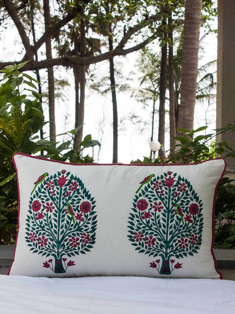 Kalpavriksha Block Printed Cotton Cushion Cover - 12 X 20 Inch