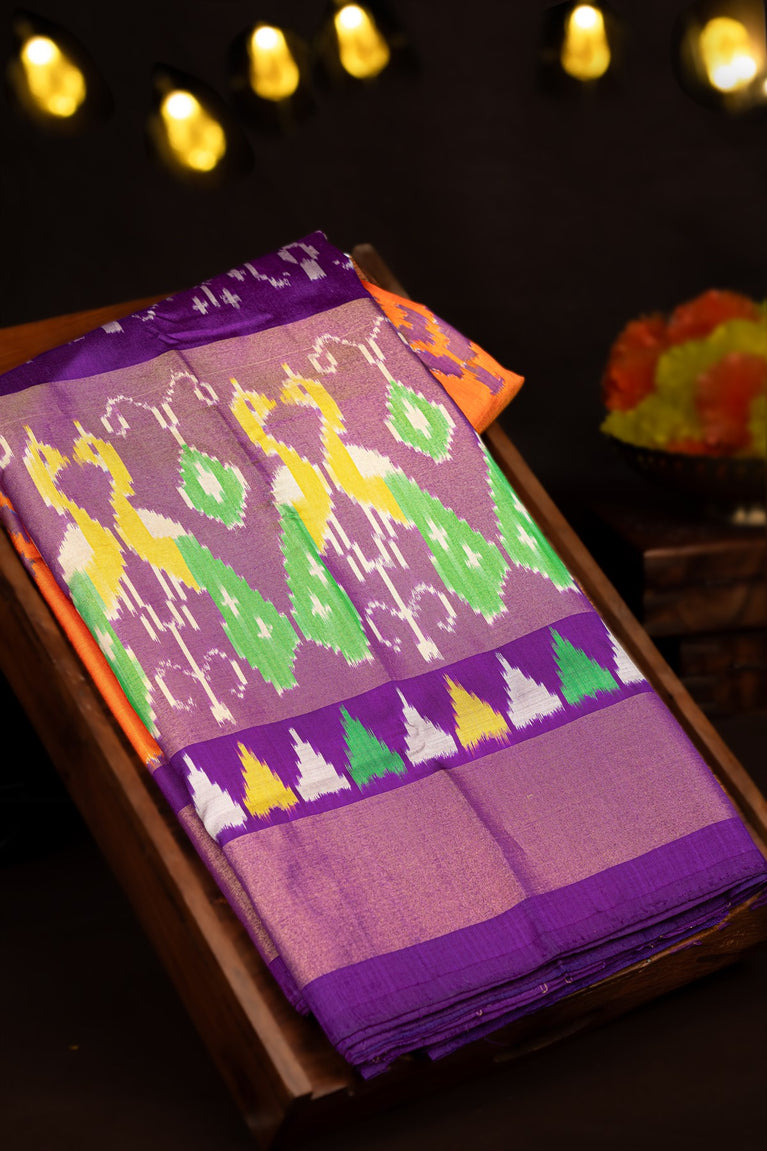 Varamahalakshmi Orange & Royal Blue Ikat Ikat Saree