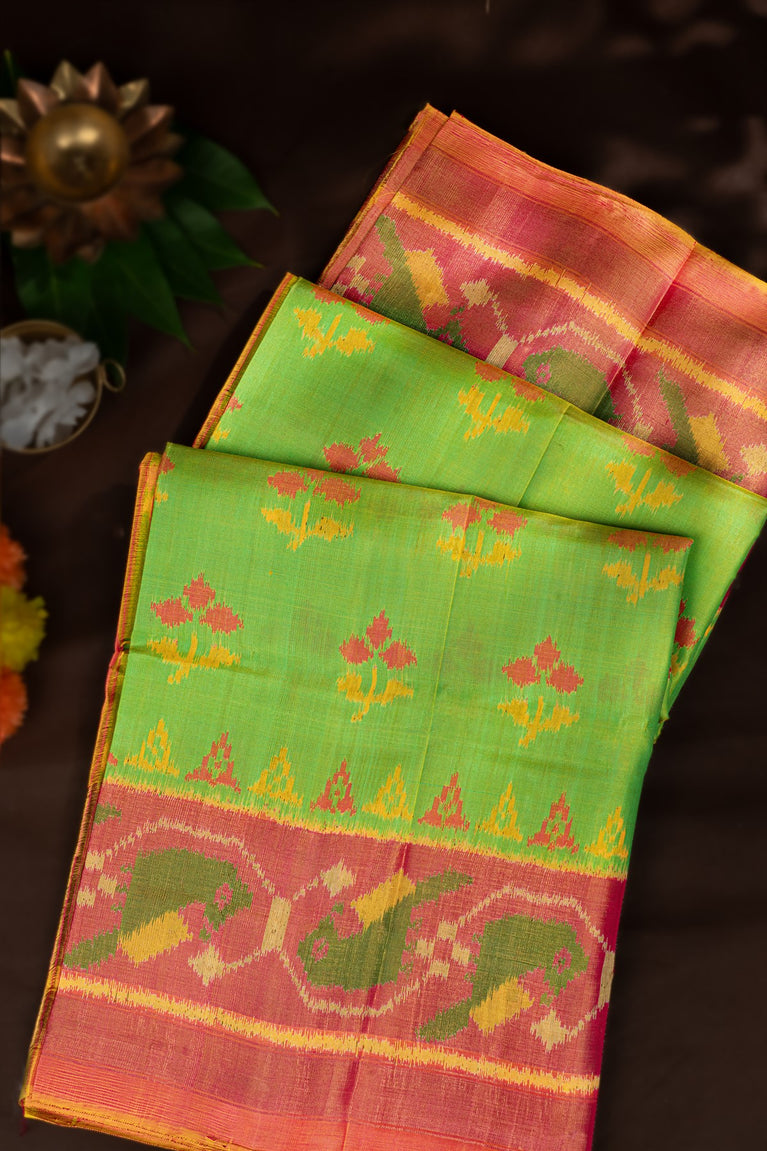 Varamahalakshmi Parrot Green & Gold Patola Ikat Saree