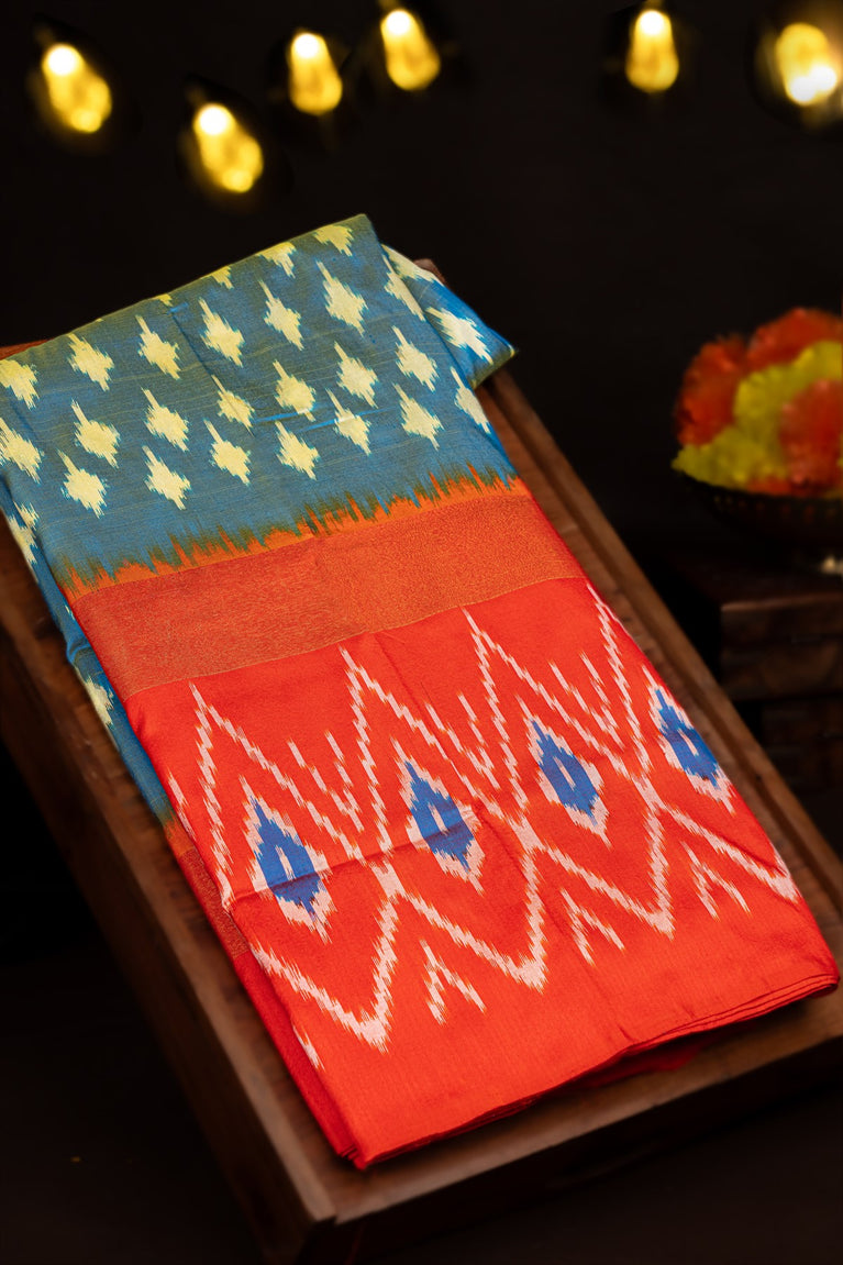 Varamahalakshmi Peacock Blue & Red Ikat Ikat Saree