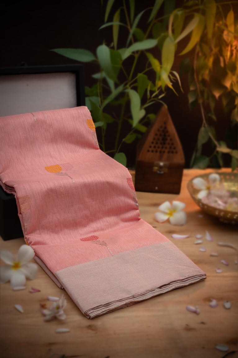 Varamahalakshmi Peach Pink & Pink Venkatagiri Motifs Saree