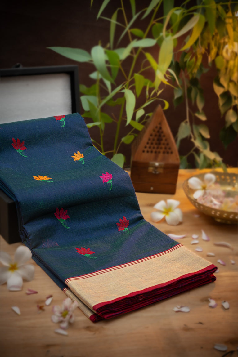 Varamahalakshmi Peacock Blue & Multi-Colour Chanderi Motifs Saree
