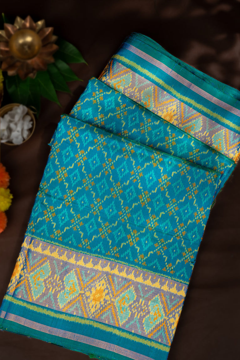 Varamahalakshmi Peacock Blue & Olive Green Patola Ikat Saree