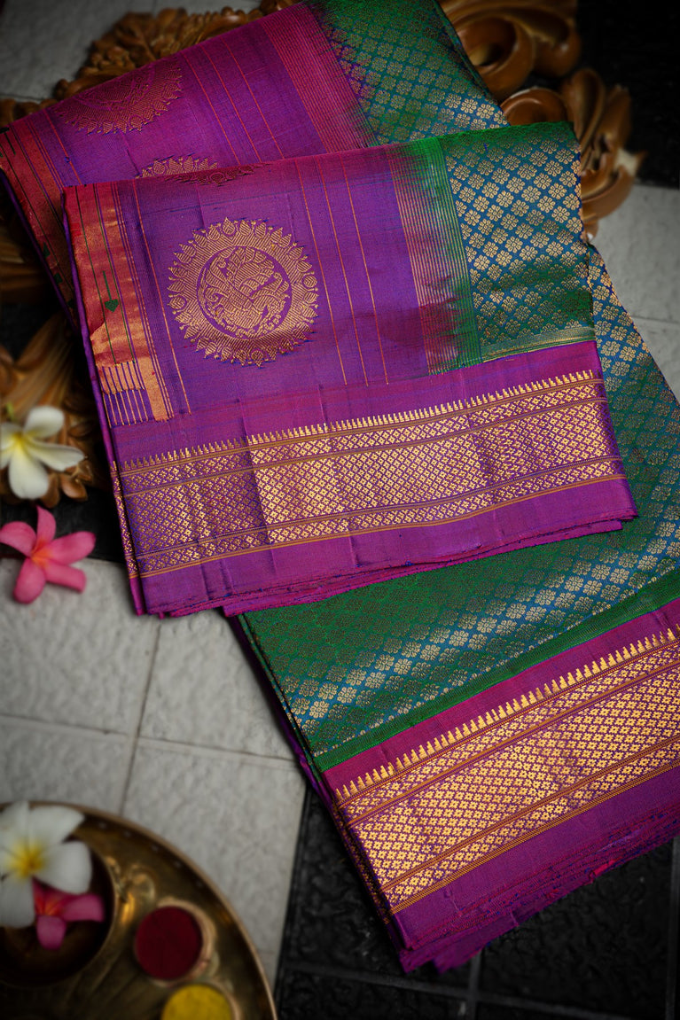 Varamahalakshmi Peacock Green & Purple Narayanapet Florals Saree