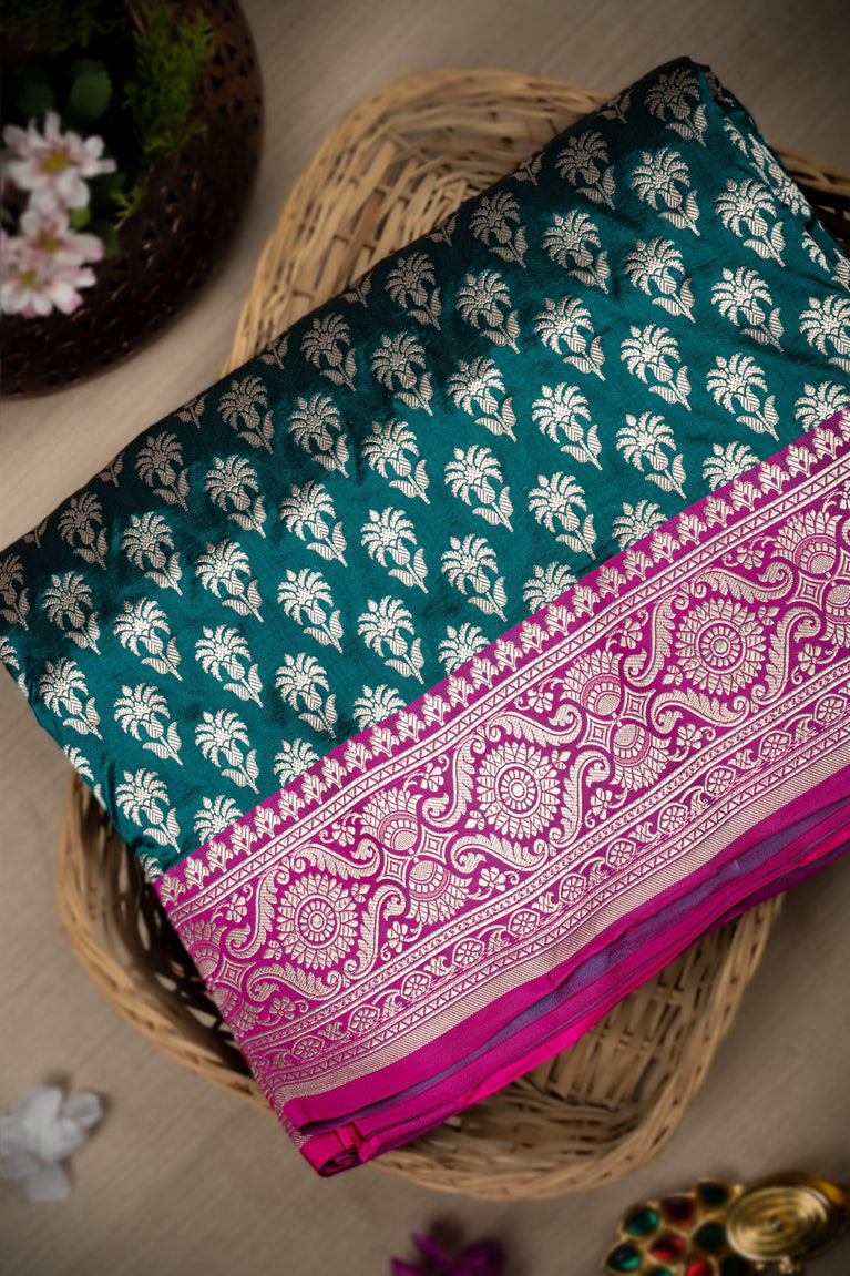 Varamahalakshmi Peacock Green & Pink Banarasi Buttis Saree