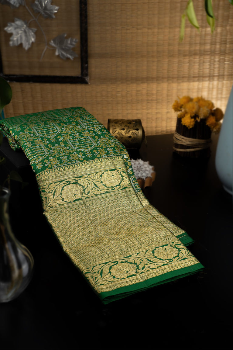 Varamahalakshmi Dark Green & Gold Kanchipuram Motifs Saree