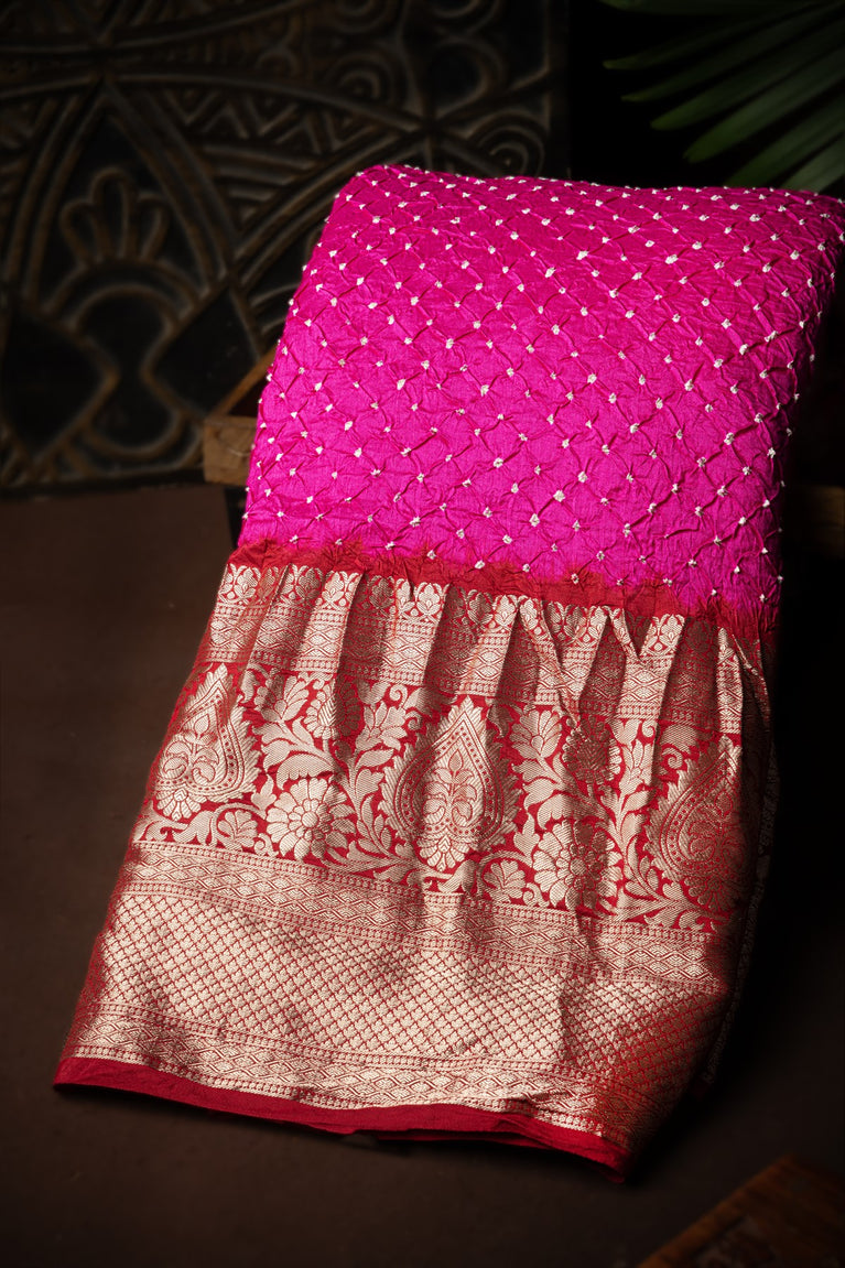 Varamahalakshmi Deep Magenta & Maroon Bandhani Bandhani Saree