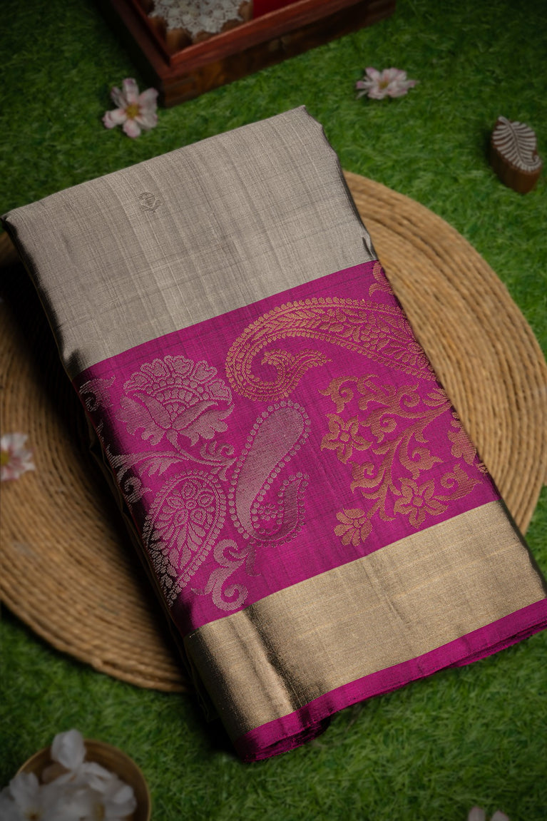 Varamahalakshmi Dark Grey & Purple Coimbatore Buttis Saree