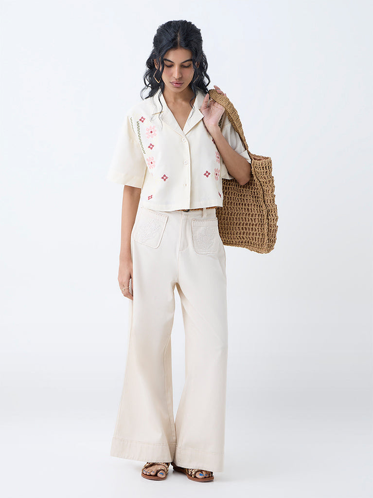 Bombay Paisley Off-White Floral Embroidered Cotton Shirt