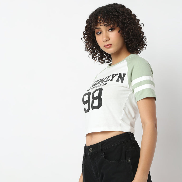 Boxy Fit Printed Short Sleeve Crop T-Shirt