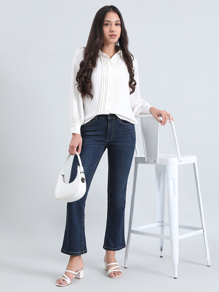 Elevate Your Casual Look With Our Stylish Boot Cut Jeans, Made From Cotton Denim. Featuring A Solid Pattern, Bootcut Fit, Full-Length Cut, Five Functional Pockets, And A Front Zipper With Button Closure. Perfect For Everyday Comfort And Effortless Style. A Must-Have Wardrobe Essential