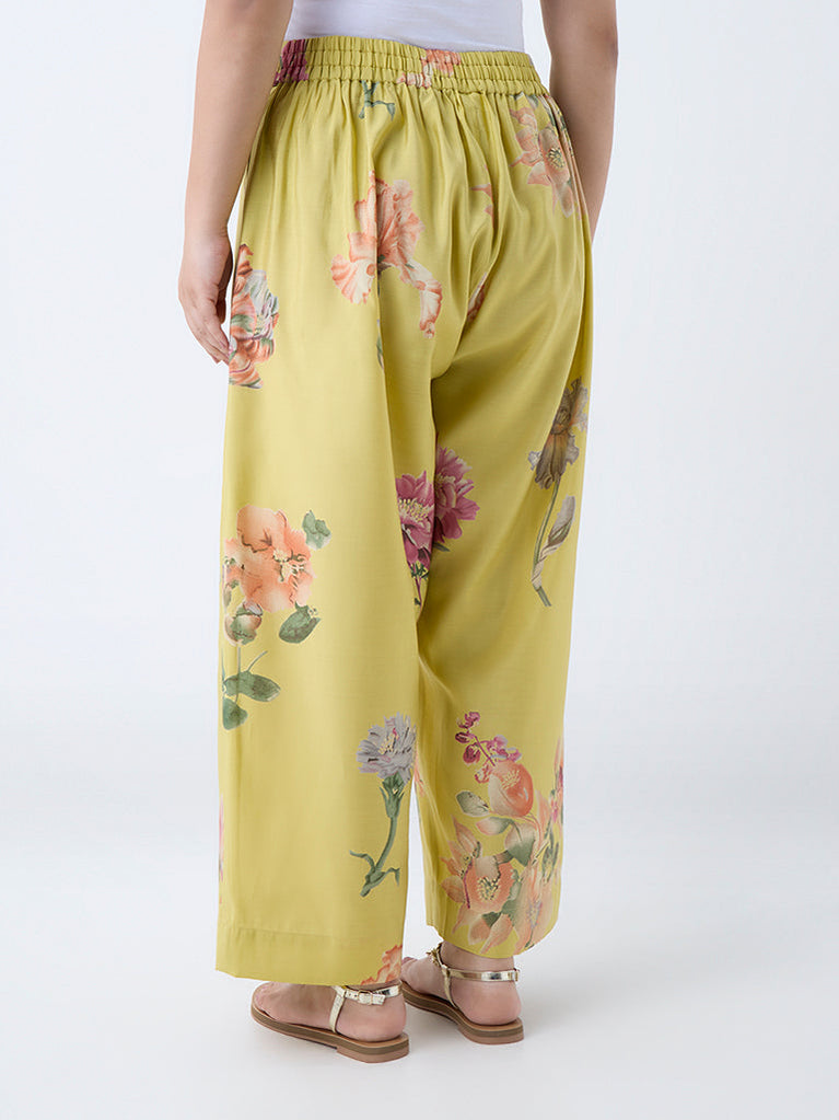 Diza Yellow Floral Printed Ethnic Pants