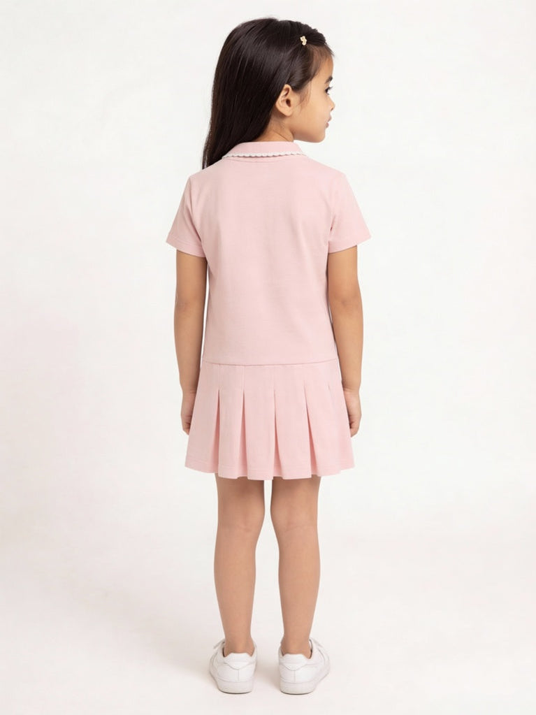 Amplify her playtime capsule with this pink polo dress by HOP Kids, designed to balance comfort with a sporty-cute feel. Featuring a classic collar with a button placket, it is finished with a pleated skirt that adds a fun, twirl-ready touch. Created from pure cotton, it keeps her comfortable through playtime and outings.