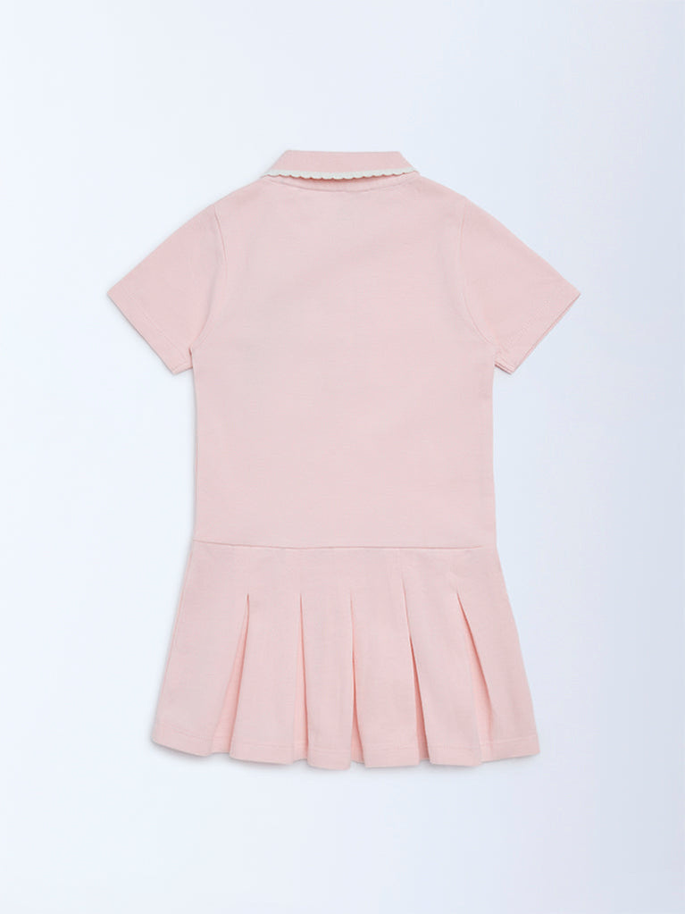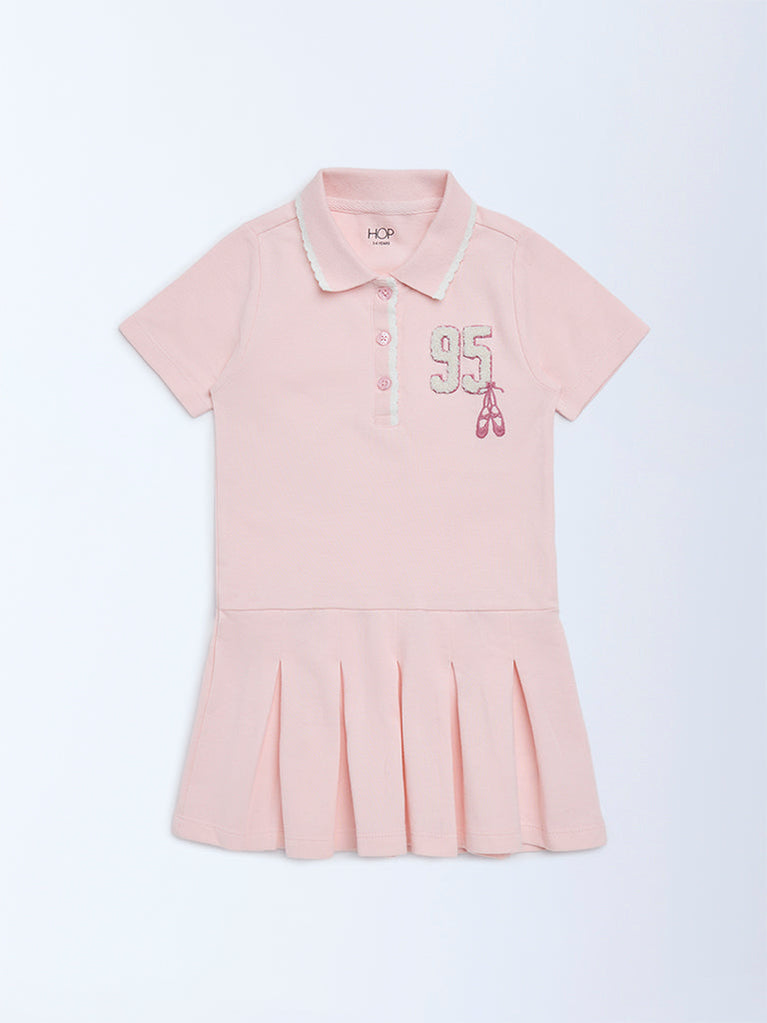 HOP Kids Girls Pink Embroidered Cotton Polo Dress