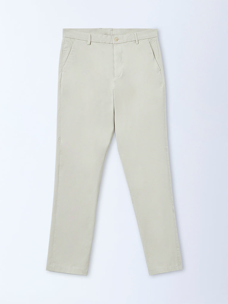 Ascot Light Grey Mid-Rise Relaxed-Fit Cotton-Blend Chinos