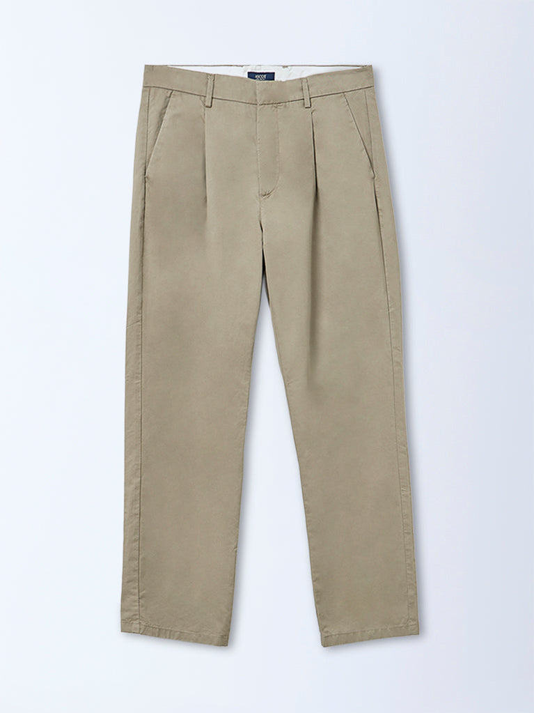 Ascot Light Taupe Mid-Rise Relaxed Fit Cotton-Blend Trousers