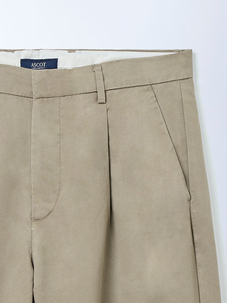 Ascot Light Beige Mid-Rise Relaxed-Fit Cotton-Blend Chinos