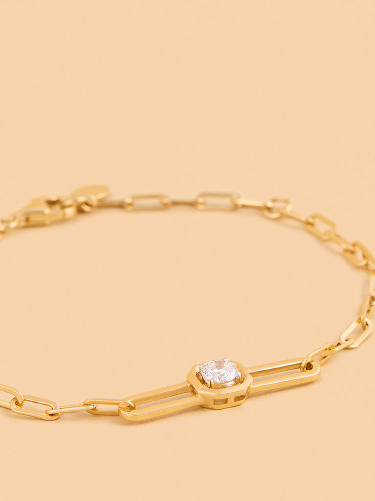 Make a statement with this bold lab diamond chain bracelet. Crafted in gold vermeil, it combines striking design with brilliant diamonds for a captivating accessory.