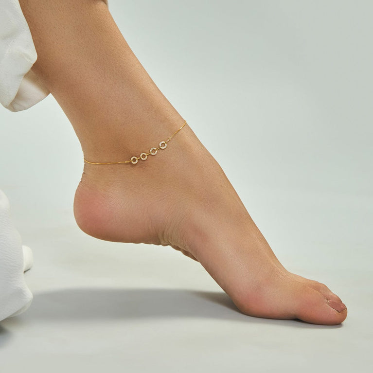 92.5 Pure Silver Circle Design PayalThis 92.5 silver payal from Kushal's Silver Jewellery Collection will add grace and elegance to your outfit. Make a style statement as you pair it with a silk kurta set and kolhapuris. Features an adjustable chain for added ease. The white zircon stones offer a charismatic style, topped with two polish options.