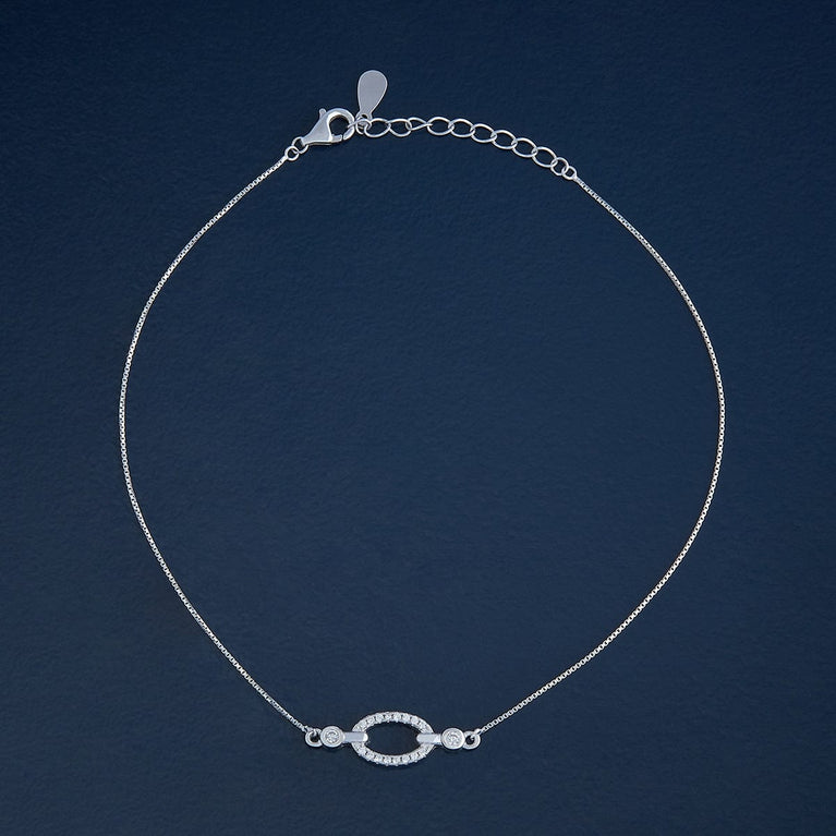 92.5 Pure Silver Oval Design Silver PayalStep up your style game with this charming 92.5 silver payal! Featuring a delicate design adorned with white stones and available in gold and rhodium polish, this payal adds a playful yet elegant touch to your look. Wear it with sarees or lehengas in vibrant colours. Perfect for adding that extra sparkle!