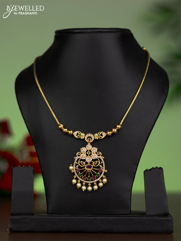 Antique attigai choker chandbali pendant with kemp stones and pearl hangings without earrings