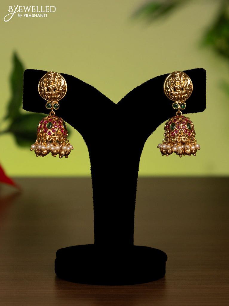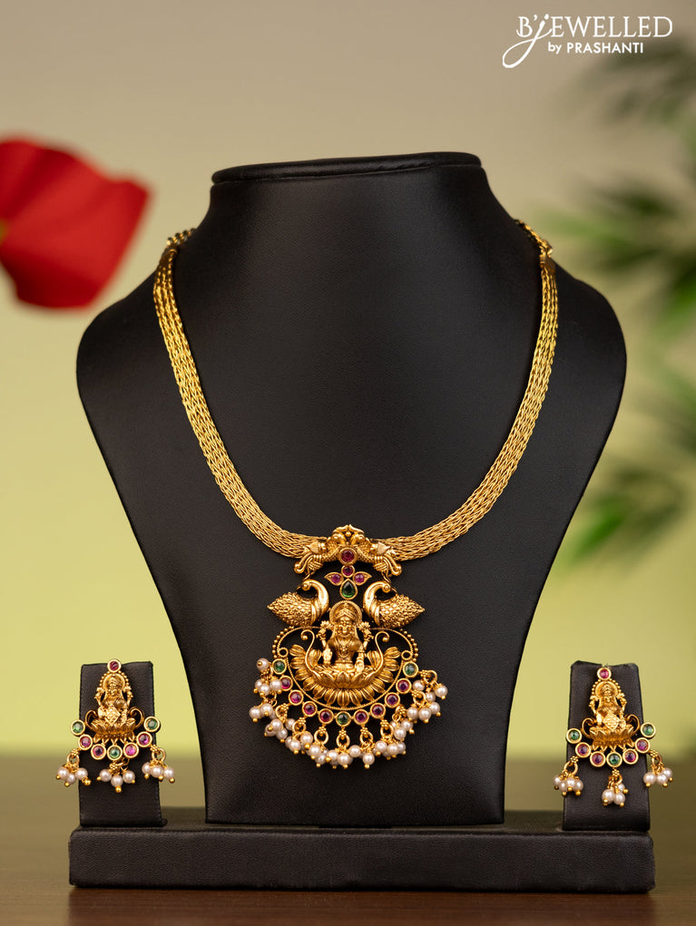 Antique attigai necklace lakshmi pendant with kemp & cz stones and pearl & golden beads hanging