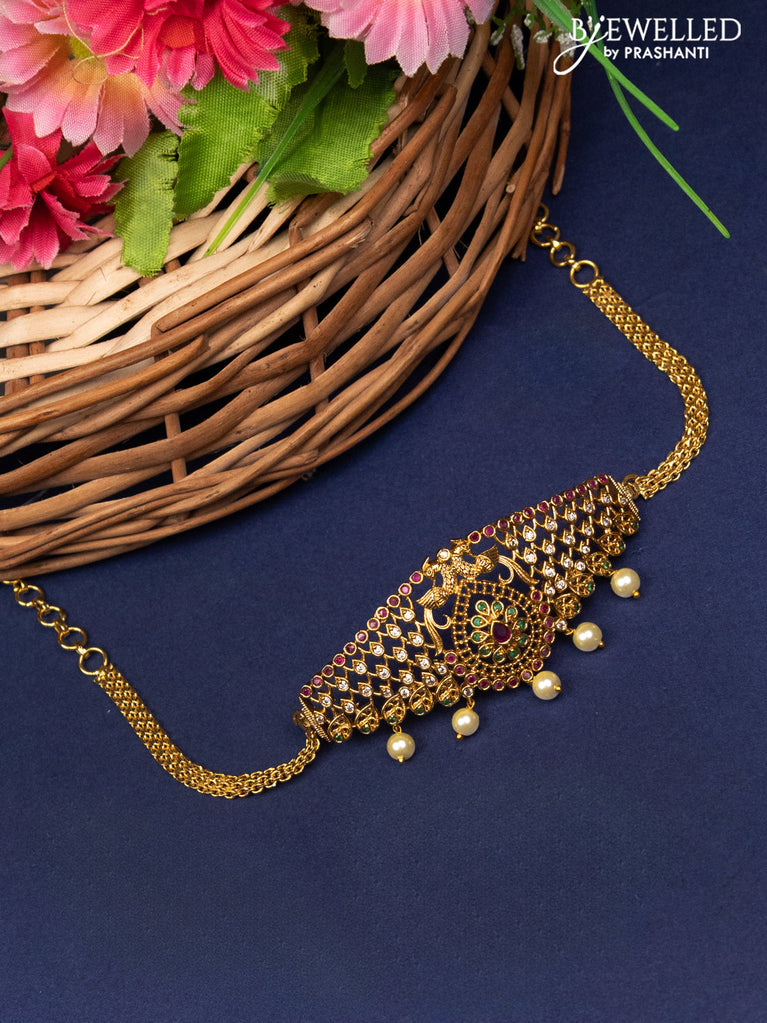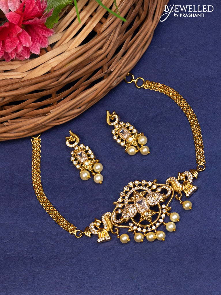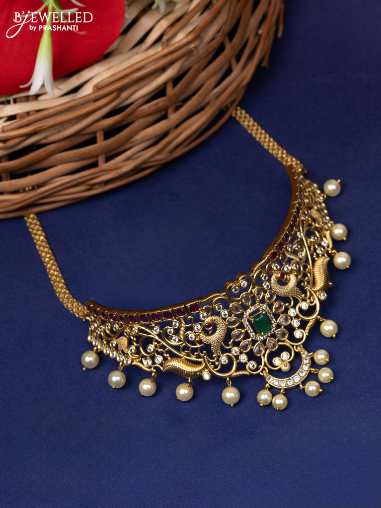 Antique choker peacock design with kemp & cz stones and pearl hangings without earrings