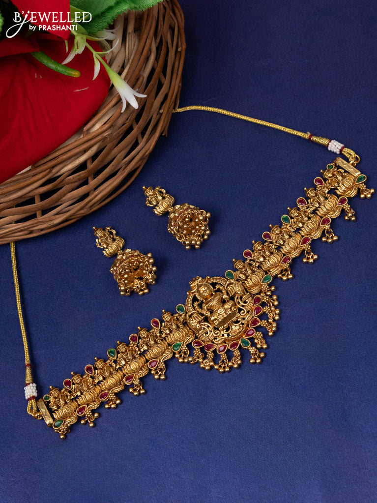 Antique choker lakshmi design with kemp stone and golden beads hangings