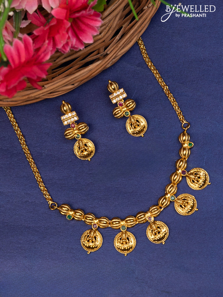 Antique choker lakshmi design with kemp stone and golden beads hangings without earring