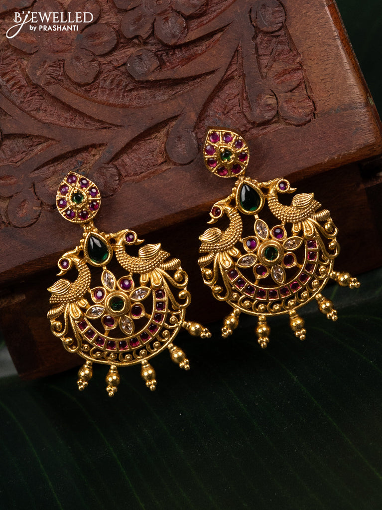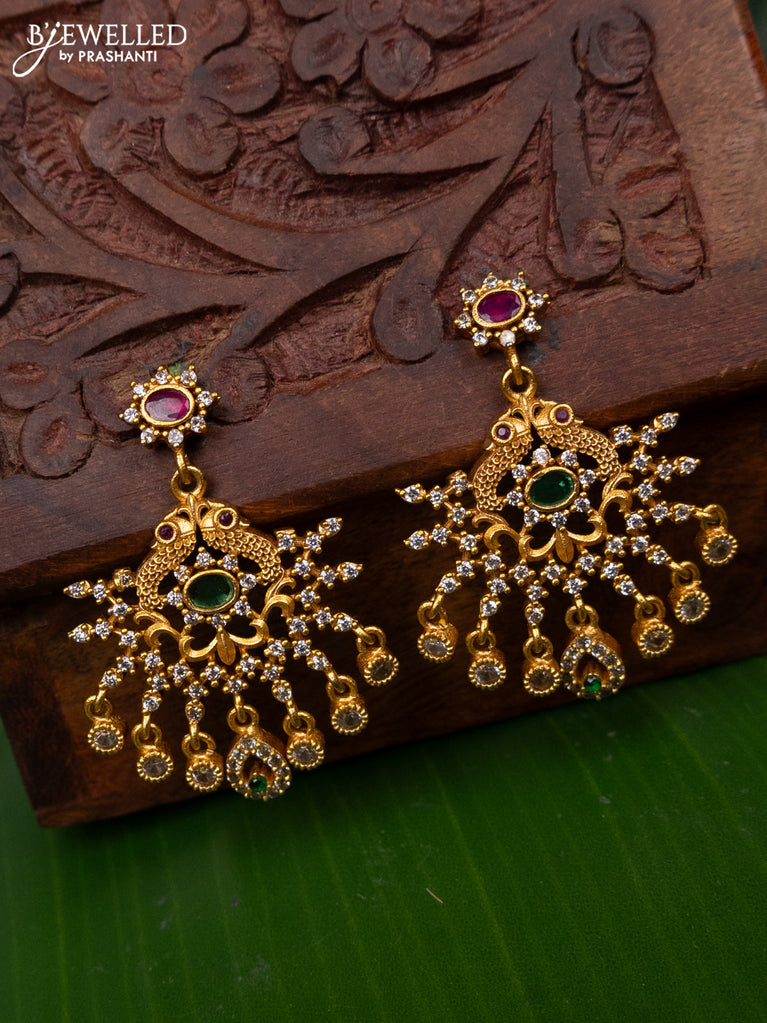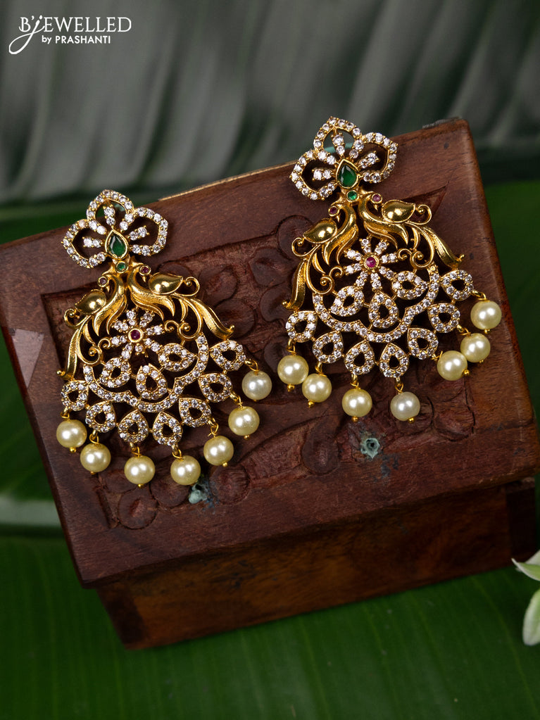 Antique earring peacock design with kemp & cz stones and pearl hangings