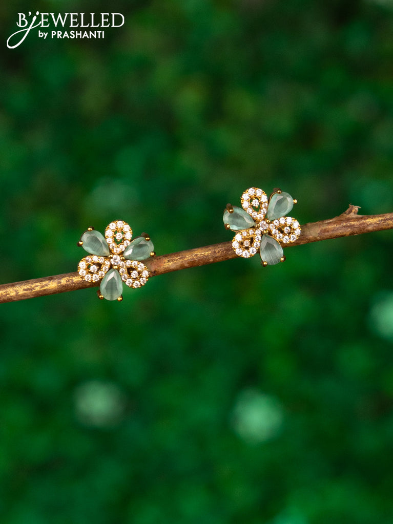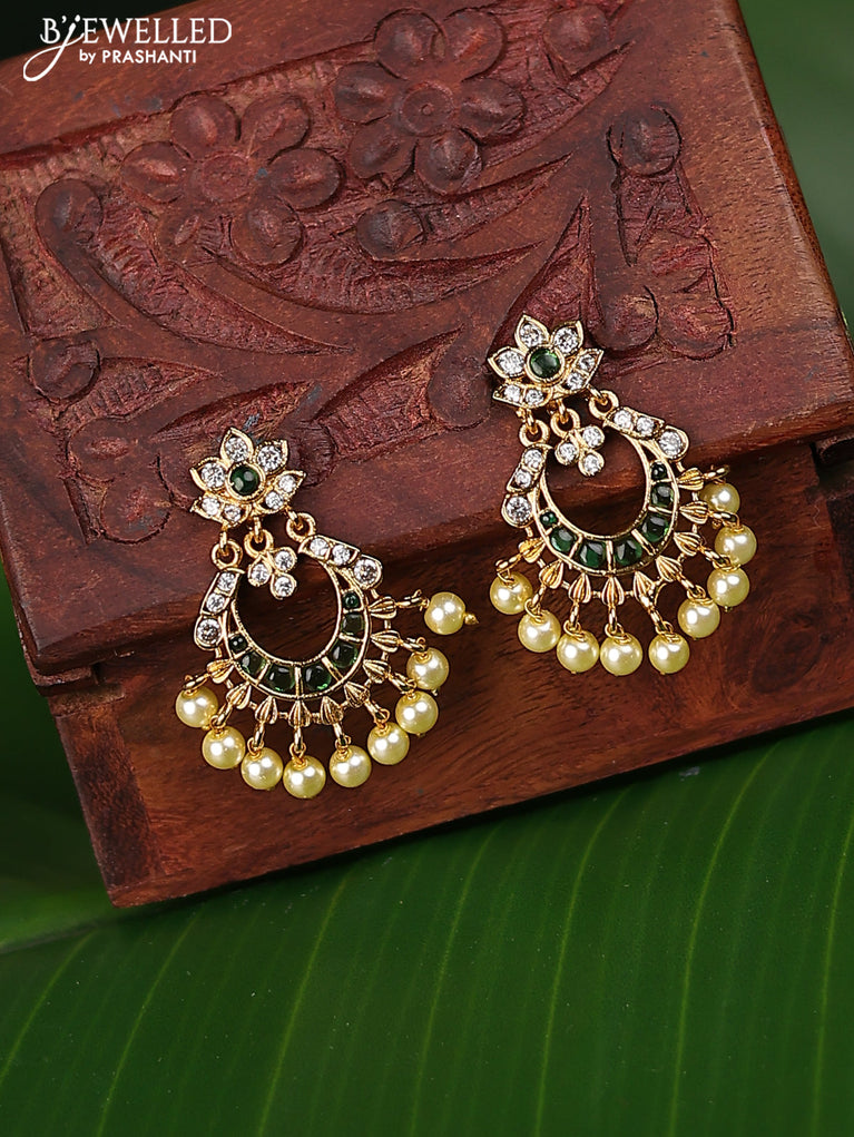 Antique earrings chandbali design with green kemp & cz stones and pearl hangings