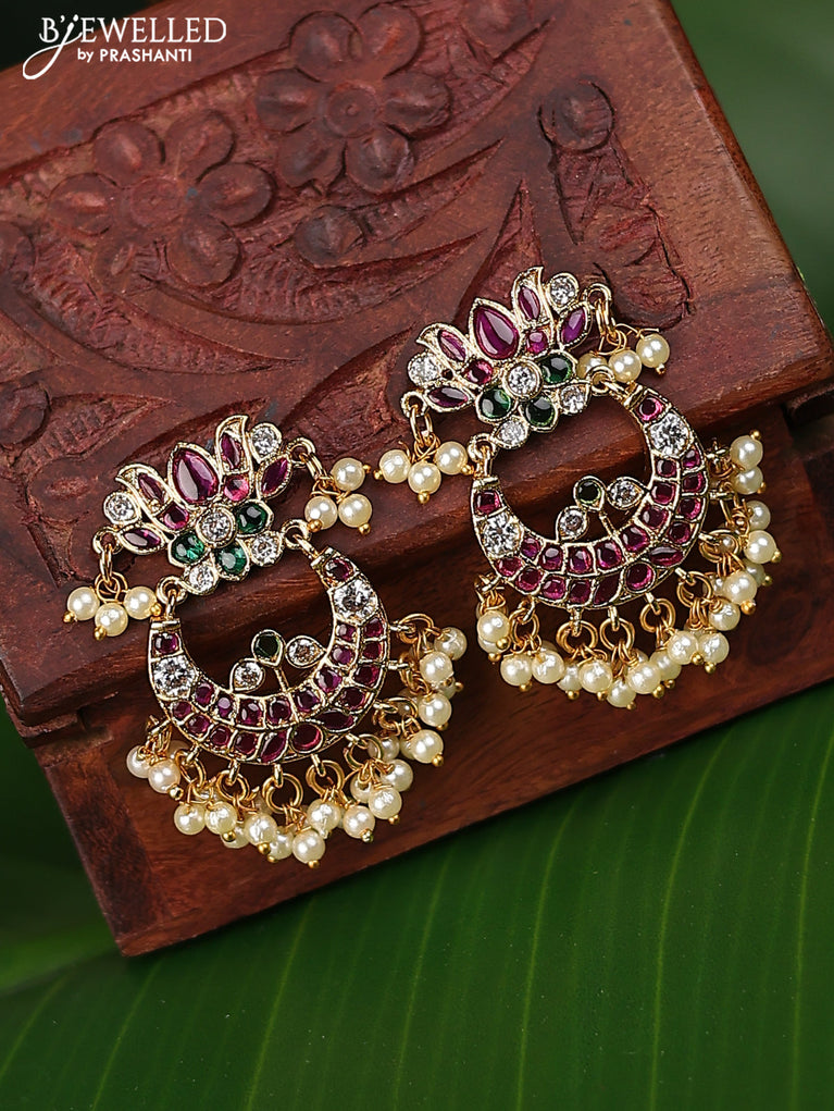 Antique earrings chandbali design with kemp & cz stones and pearl hangings