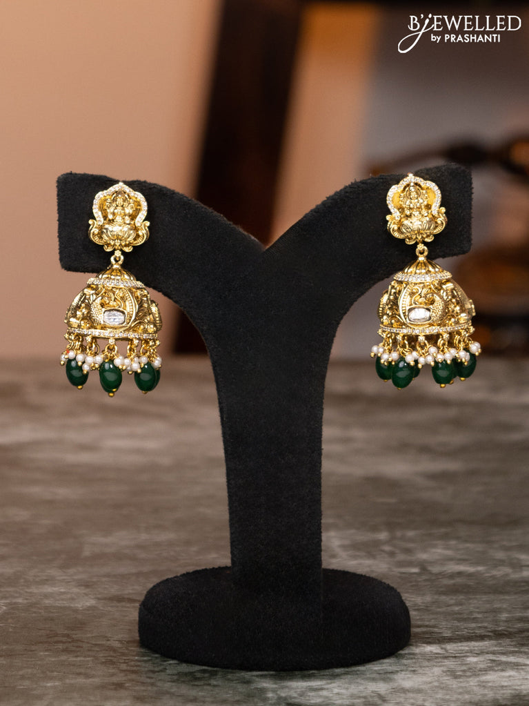 Antique haaram lakshmi design with kundan & cz stones and green beads hangings