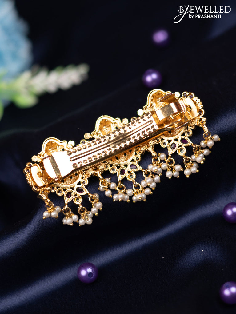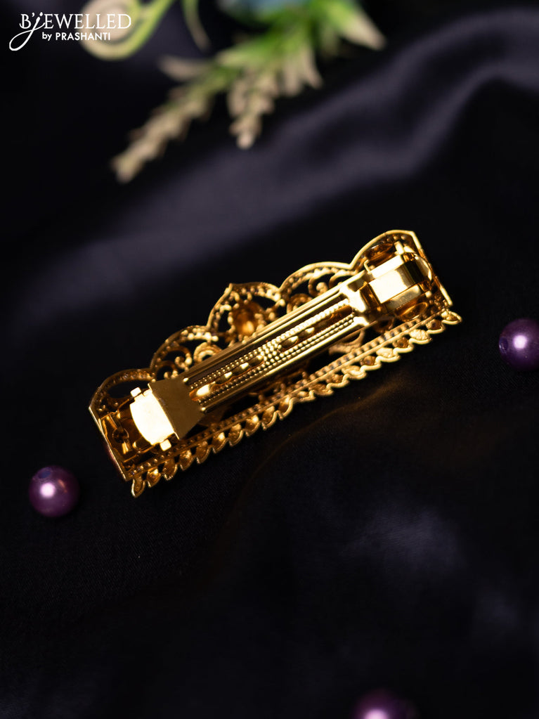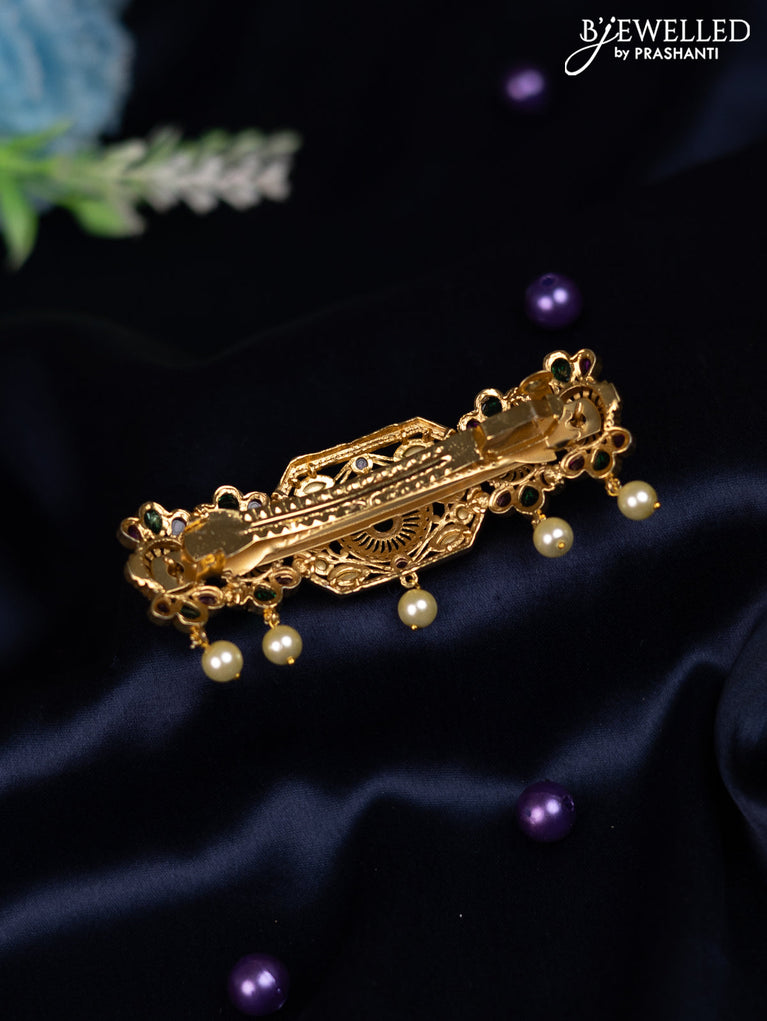 Antique hair clip medium size with kemp & kundan stones and pearl hangings